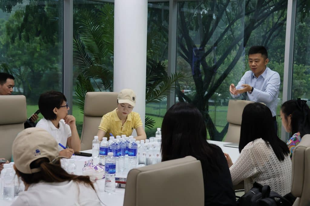 After a catered lunch, students engaged in several icebreaking activities designed to encourage teamwork and communication. These activities encouraged students to speak in English, helping them practice conversational skills, accustoming them to a multi-cultural environment, and preparing them for lessons primarily conducted in English.
